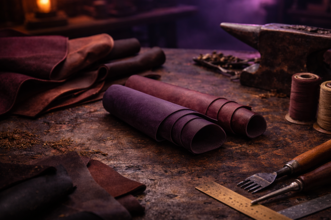 Bold and expressive. A mix of deep violet and burgundy creates a dramatic, artistic tone. Soft yet durable, it carries rich color depth that becomes even more striking as it ages.